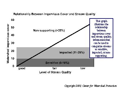 Stream quality directly correlates to the amount of impervious cover in the surrounding land.