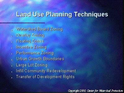 A wide variety of techniques can be used to manage land use and impervious cover in subwatersheds.
