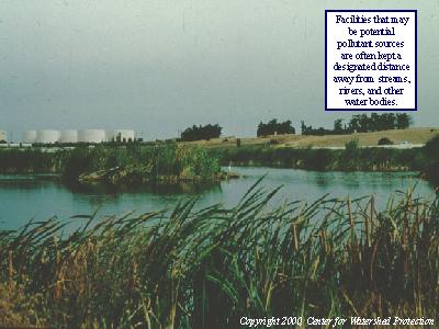 Facilities that may be potential pollutant sources are often kept designated distances away from streams, rivers, and other water bodies.