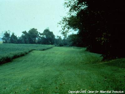 This agricultural buffer consists of a grassy strip as well as a forested portion.