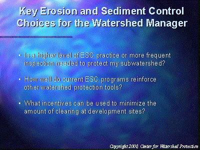 Every community should have an effective erosion and sediment control program to reduce the potentially severe impact of the construction process. The watershed manager should play a key role in defining which specific ESC practices need to be applied within the subwatershed to best protect sensitive aquatic communities, reduce sediment loads, and maintain the boundaries of conservation areas and buffers. These are some of the key decisions that watershed managers often make.