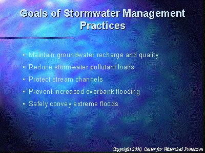 Watershed managers should determine the goals for stormwater management practices to determine which practices to apply.