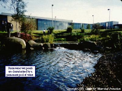 Stormwater wet ponds are characterized by a permanent pool of water.