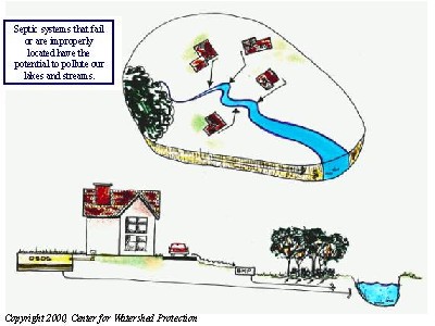 Because of their widespread use and high volume discharges, septic systems have the potential to pollute groundwater, lakes and streams if they are located improperly or if they fail. Even properly functioning septic systems can be a substantial source of nutrient loads in some settings.