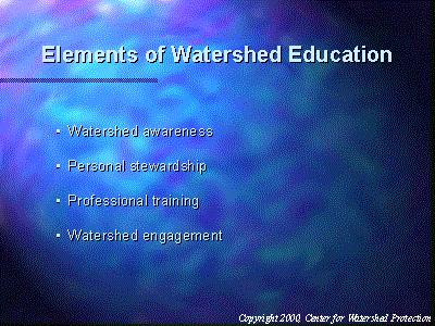 - professional training: educating the development community on how to apply the tools of watershed protection