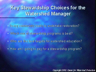 This slide lists some key stewardship choices that watershed managers must make.