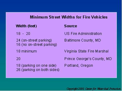 Access for fire vehicles is often cited as an excuse for keeping streets wide. In actuality, many jurisdictions have determined that residential streets that are between 18-24 feet safely allow fire trucks to pass.