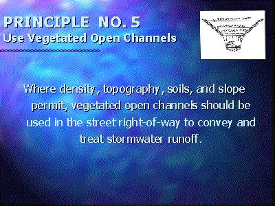 Open vegetated channels remove pollutants on site by allowing infiltration and filtering to occur, unlike curb and gutter systems which move water with virtually no treatment. Engineering techniques have advanced the roadside ditches of the past which suffered from erosion, standing water and break up of the road edge. Grass channels and dry swales are two such alternatives and with proper installation under the right site conditions, they are excellent methods for treating stormwater on site. In addition, open vegetated channels can be less expensive than curb and gutter system.