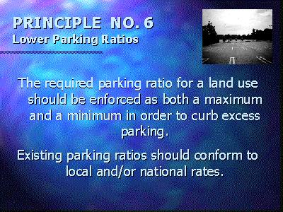 Many communities often determine minimum parking ratios by adopting and modifying requirements of neighboring communities or by using the Institute of Transportation Engineers information publication. In many cases, these parking ratios are excessive and there are no set maximum parking ratios. The fear of complaints and loss of customers, as well as the requirements for commercial loans are disincentives for setting maximum parking ratios. As a result, many parking lots are often fully utilized only for a few hours each year.