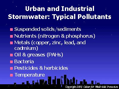 In addition to increased stream temperature, urbanization can increase the amount of pollutants entering water bodies, such as sediment, nutrients, organic matter, trace metals (copper, cadmium, lead), pesticides, herbicides and hydrocarbons, and others. During storm events, the quality of urban stormwater declines sharply which adversely affects human and aquatic uses of downstream waters.