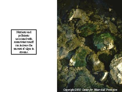 In urban streams, nutrients and pollutants associated with stormwater runoff can increase the amount of algae activity in streams.