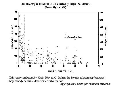 This study conducted by Chris May, et. al. defines the inverse relationship between large woody debris and watershed urbanization.