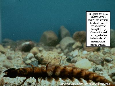 Hellgramites (also known as "toe biters") are sensitive to alterations in stream habitat brought on by urbanization and can be part of an indicator-based assessment of stream quality.
