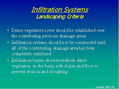 Clogging is the biggest concern with infiltration practices. Many fail as a result of construction site runoff entering the system prior to site stabilization. Great care must be exercised to avoid fouling the system prematurely.