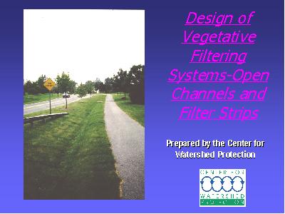 This slide show explores the design principles of four different vegetative filter practices. Each of the four practices incorporate the four major design components of: flow regulation, pretreatment, filtering, and overflow. Vegetative practices have been called a whole suite of names in the past. These include, grassy swales, bio swales, filter strips, grass buffers, and grass channels, to name a few. This slide show consolidates many of these past naming conventions and design principles into a unified approach for the design of water quality treatment using vegetative filters.