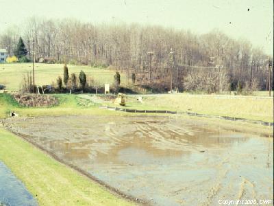 This slide shows a wetland cell being dewatered in preparation for planting.