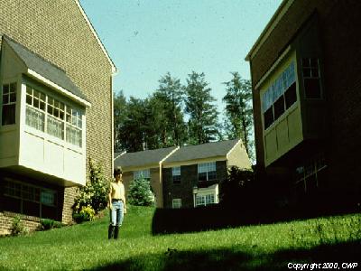 Maintenance easements can be as unassuming as this access between two townhomes.