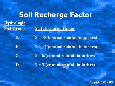 The soil recharge factor is derived by dividing the annual recharge volume by the total annual rainfall of the region.