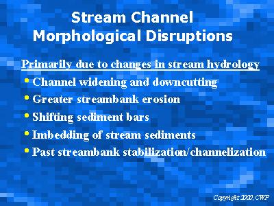Changes in stream hydrology caused by development can spur morphological disruptions of a stream channel.