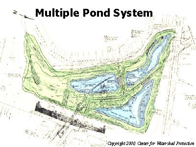 Multiple pond systems provide water quality storage in two or more cells that create longer pollutant removal pathways.