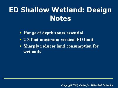 Here are some key design notes for the ED shallow wetland.