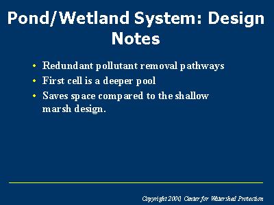 Listed here are some important design notes for the pond/wetland system.