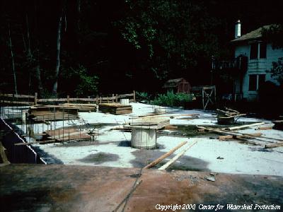 This is a photo of an underground sand filter during construction.