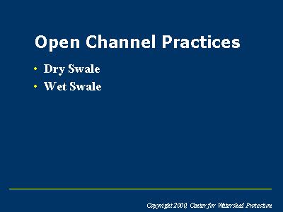 The term swale refers to a vegetated, open channel management practices designed specifically to treat and attenuate stormwater runoff for a specified water quality volume. As stormwater runoff flows through these channels, it is treated through filtering by the vegetation in the channel, filtering through a subsoil matrix, and/or infiltration into the underlying soils. Swales can either be dry or wet. The specific design features and methods of treatment differ in each of these designs, but all are improvements on the traditional drainage ditch. They incorporate modified geometry and other design features to use the swale as a treatment as well as conveyance practice.